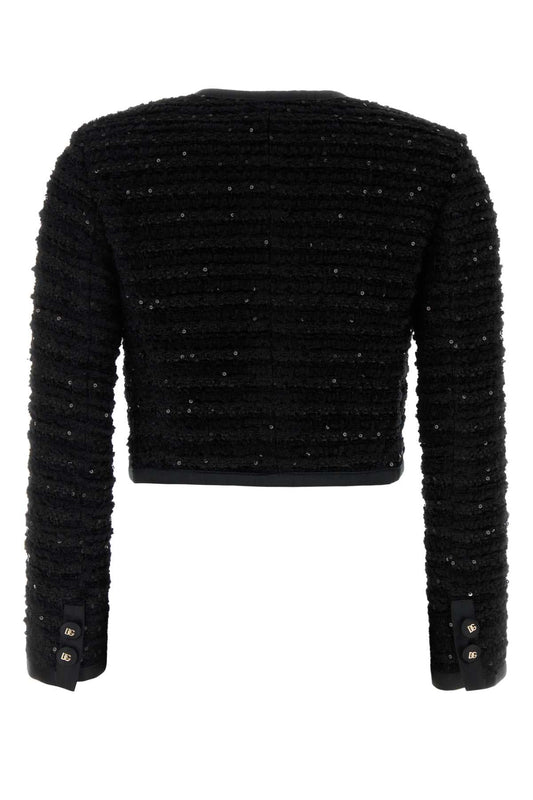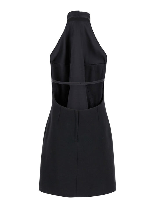 Dolce & Gabbana Women Black Mini Dress With Floral Detail In Wool Woman