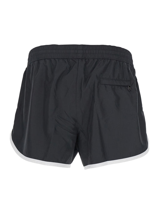 Dolce & Gabbana Men Black Swimwear With Logo Drawstring And Logo Tag In Tech Fabric Man