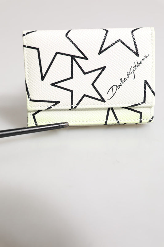Dolce & Gabbana White Leather Trifold DG Star Print Card Holder Women's Wallet ()