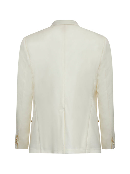 Dolce & Gabbana Men Ivory Flannel Double-Breasted Blazer