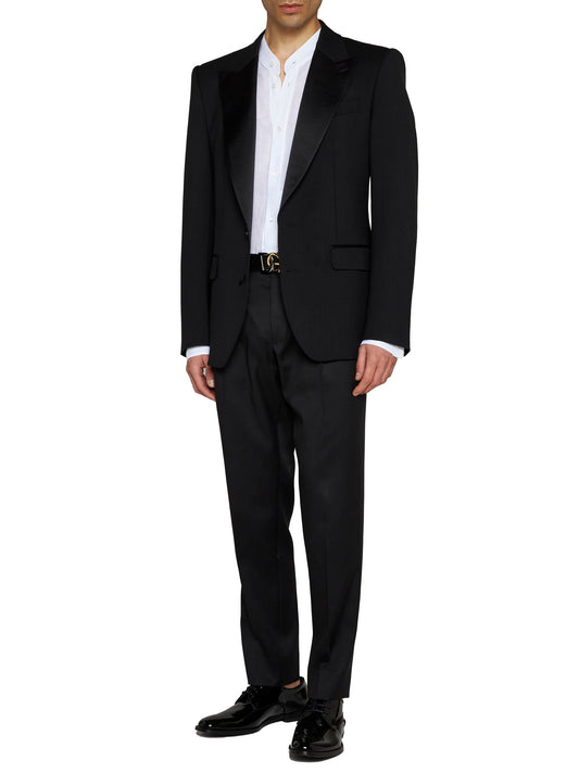 Dolce & Gabbana Men Black Stretch Wool Sicilia Tuxedo Blazer