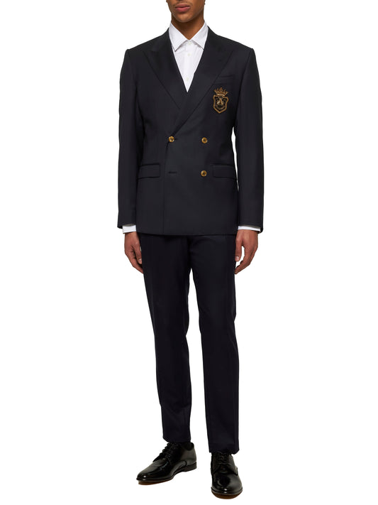 Dolce & Gabbana Men Blue Wool Double-Breasted Blazer
