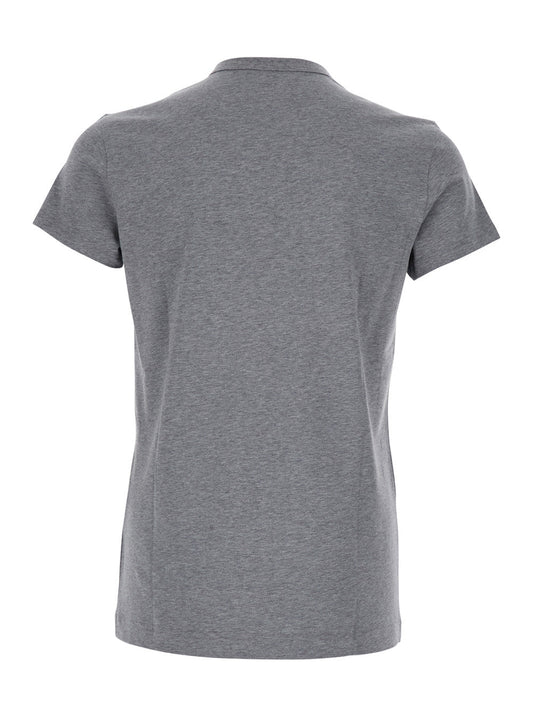 Dolce & Gabbana Men Grey Crewneck T-Shirt With Tonal Logo Lettering Embroidery On The Front In Cotton Stretch Man