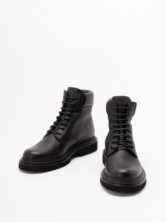 Dolce & Gabbana Men 'Portofino' Black Low Top Sneakers With Metal Heel Tab And Logo Patch In Leather Man