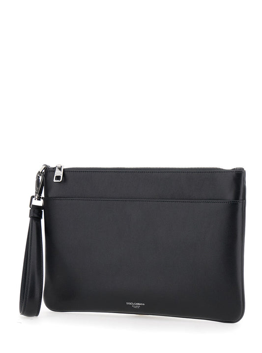 Dolce & Gabbana Men Black Clutch With Removable Wrist Strap And Logo Lettering On The Front In Leather Man