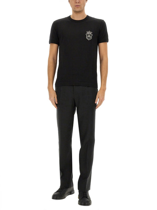 Dolce & Gabbana Men Cotton T-Shirt With Heraldic Patch