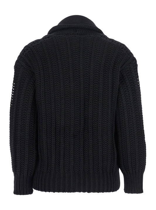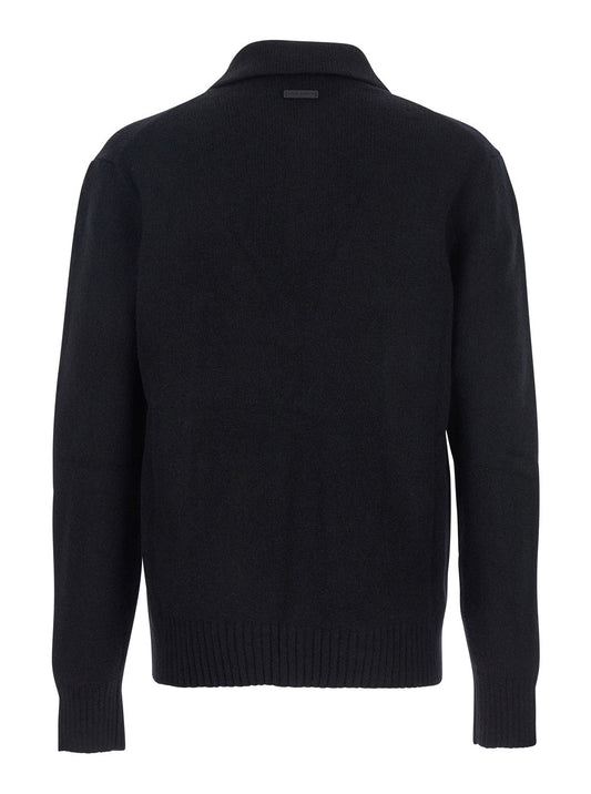 Dolce & Gabbana Men Black Sweater With Polo Collar And Back Logo Patch In Wool Man