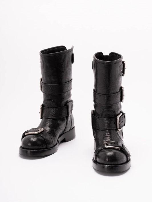 Dolce & Gabbana Women Black Ankle Boots With All-Over Buckles In Leather Woman