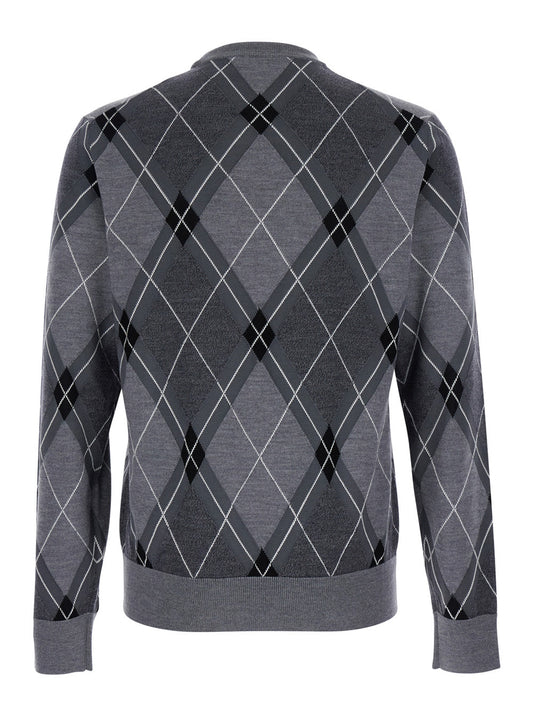 Dolce & Gabbana Men Grey Crew Neck Sweater With Front Logo And Diamond Pattern In Wool Blend Man