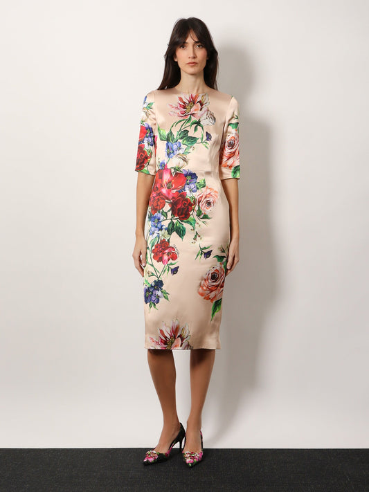 Dolce & Gabbana Women Satin Dress With Iconic Floral Print