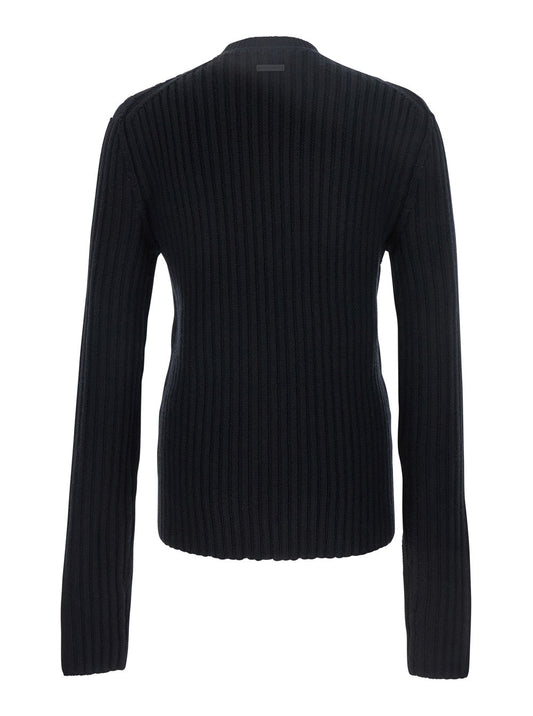 Dolce & Gabbana Men Black Ribbed Knit Crewneck Sweater With Logo Patch On The Rear In Wool Man
