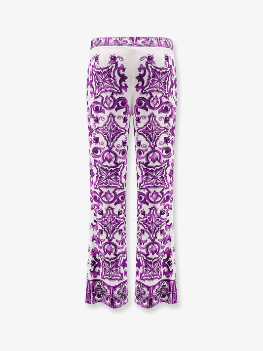 Dolce & Gabbana Women Silk Trousers With Maiolica Print