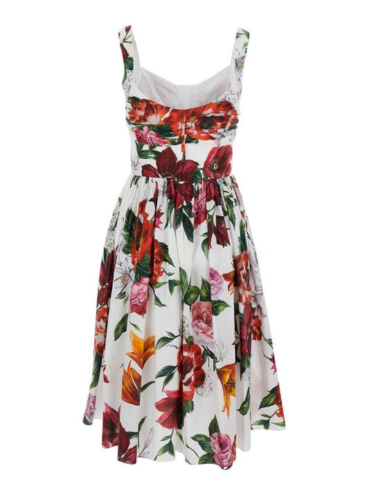 Dolce & Gabbana Women Multicolor Midi Dress With Wide Neckline And All-Over Floral Print In Cotton Woman