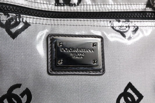 Dolce & Gabbana Polyester Gray Black DG Logo Plaque Backpack Men's Bag