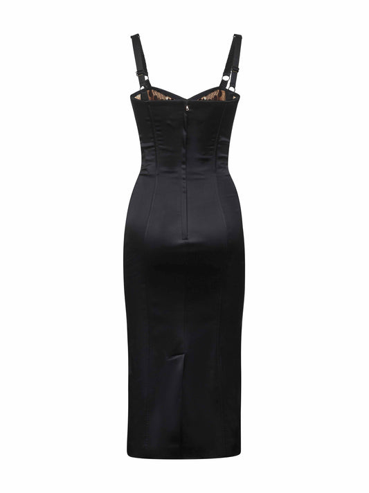Dolce & Gabbana Women Black Satin Calf-Lenght Bustier Dress
