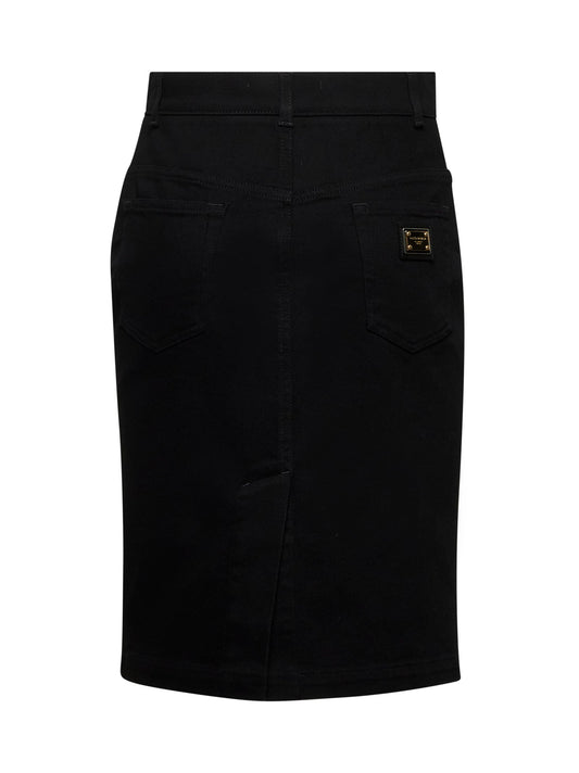 Dolce & Gabbana Women Black Stretch Denim Midi Skirt