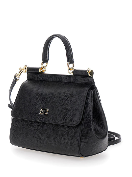 Dolce & Gabbana Women Black Handbag With Adjustable And Removable Shoulder Strap And Logo Plaque On The Front In Grained Leather Woman