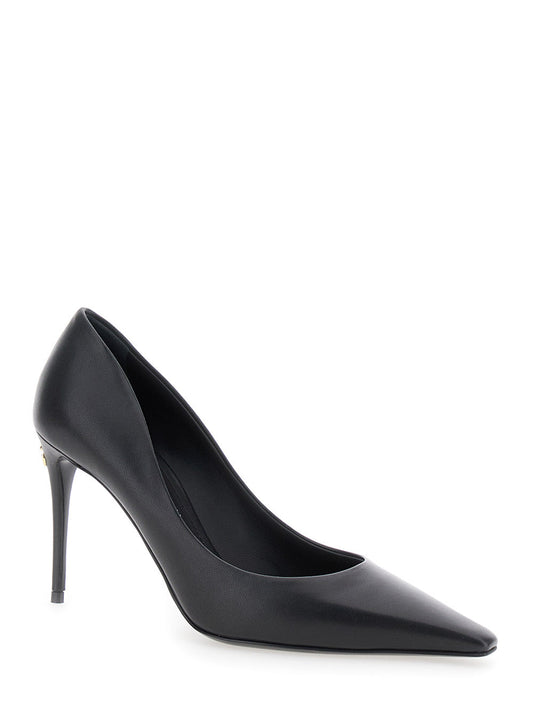 Dolce & Gabbana Women Black Pointed Pumps With Dg Detail In Leather Woman