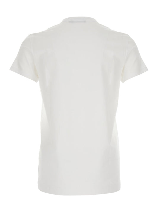 Dolce & Gabbana Men White Crewneck T-Shirt With Tonal Logo Lettering Embroidery On The Front In Cotton Stretch Man