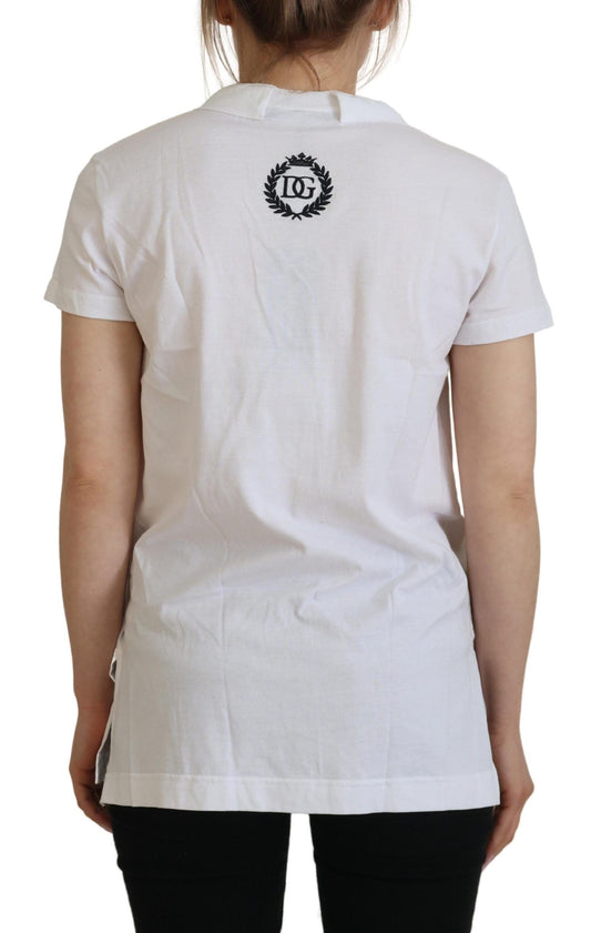 Dolce & Gabbana White Short Sleeve V-neck Cotton Top Blouse Women's T-shirt