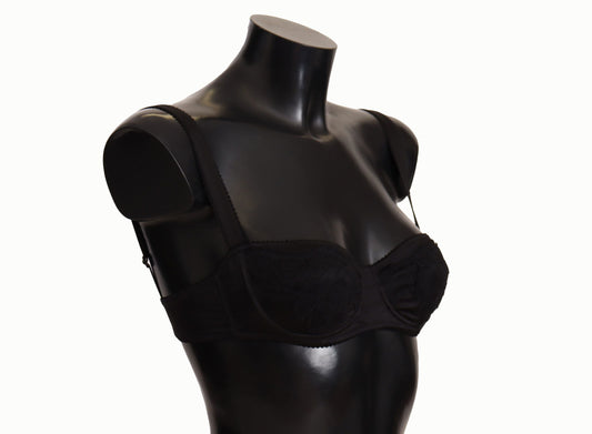 Dolce & Gabbana Black Polka Dot Satin Lace Balconette Women's Bra