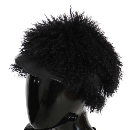 Dolce & Gabbana Black Tibet Lamb Fur Leather Gatsby Women's Hat