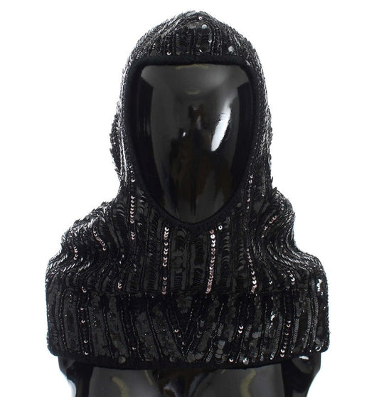 Dolce & Gabbana Black Knitted Sequin Hood Scarf Women's Hat