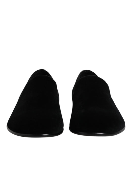 Dolce & Gabbana Black Velvet Slip On Loafers Formal Men's Shoes