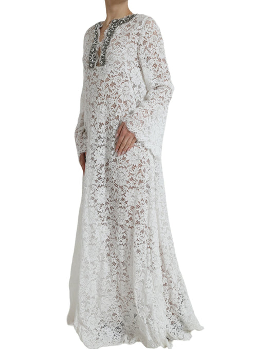 Dolce & Gabbana White Lace Crystal Embellished Shift Women's Dress