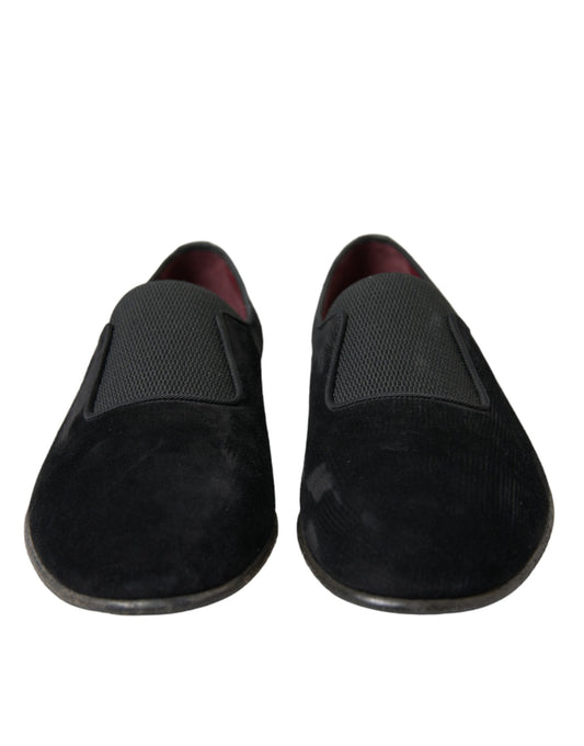 Dolce & Gabbana Black RUNWAY Velour AMALFI Loafers Men's Shoes