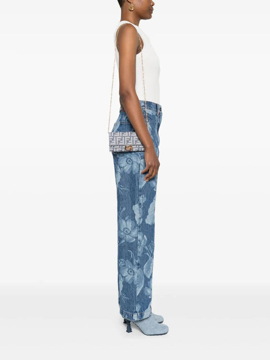 FENDI Mini Trifold Baguette Wallet in Jacquard Denim Effect