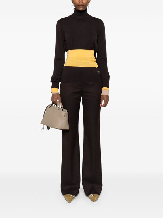 FENDI Wool Sweater with Ribbed Detailing - Long Sleeves