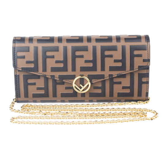 Fendi Continental Wallet with Chain in Brown Leather