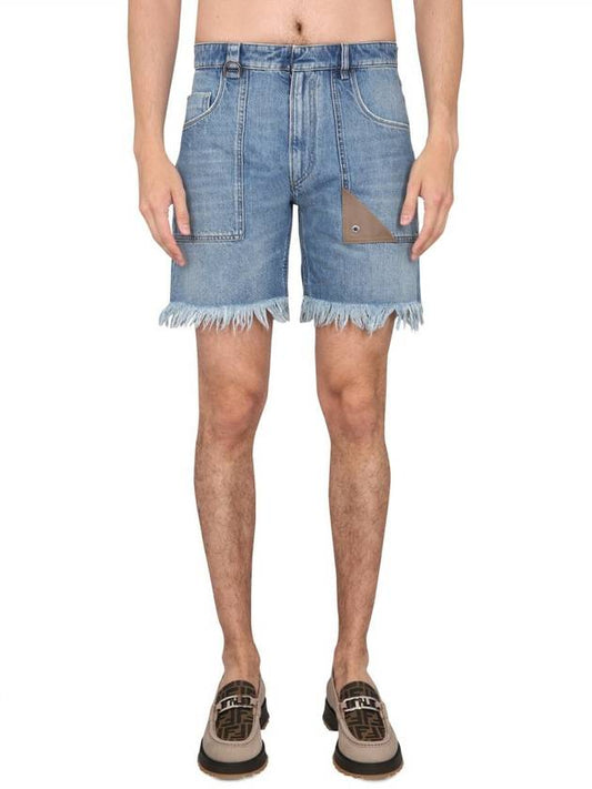Fendi Fringe Denim Shorts Blue