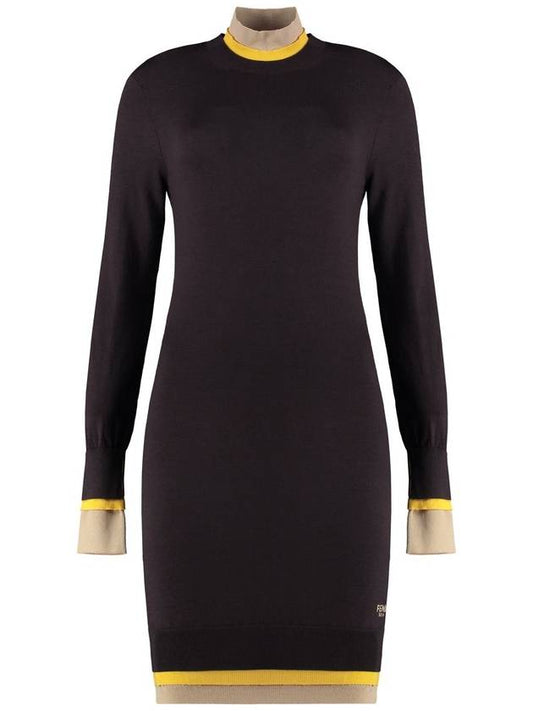 Fendi Long Sleeve Hooded Wool Silk Short Dress Beige