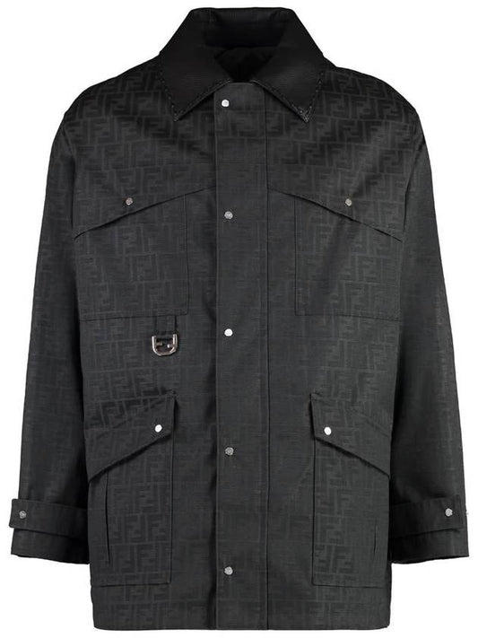 Fendi Waxed FF Jacquard Blouson Jacket Brown