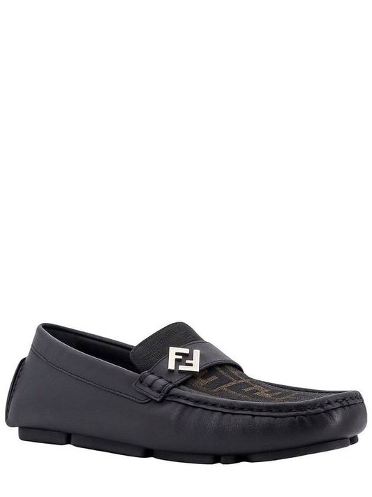 Fendi FF Square Buckle Reversible Leather Canvas Belt Brown
