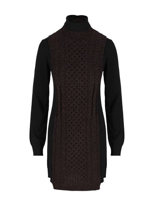 Fendi High Neck Cashmere Midi Dress Dark Purple