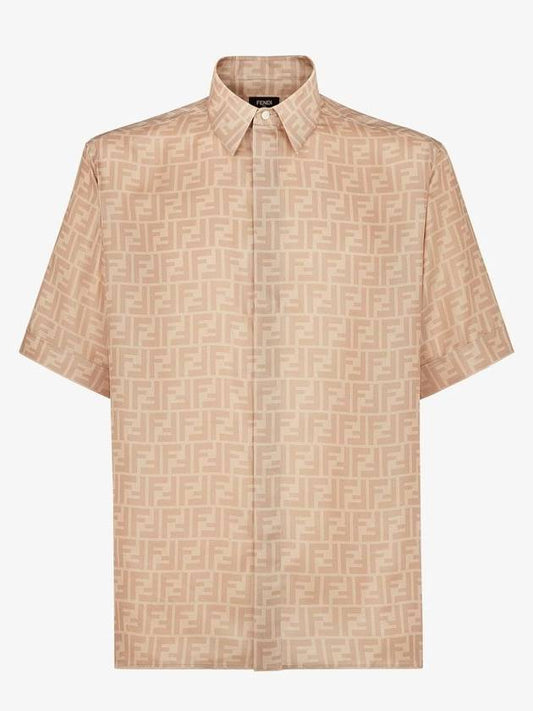 Fendi Men's FF Motif Silk Short Sleeve Shirt Beige
