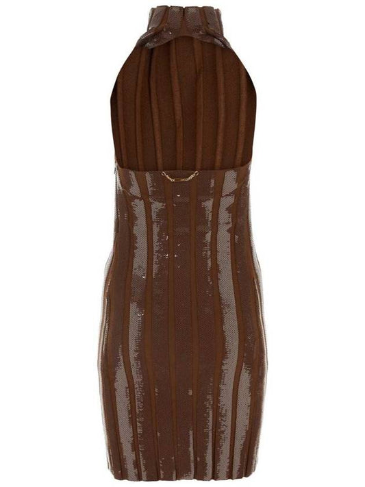 Fendi Long Sleeve Hooded Wool Silk Short Dress Beige