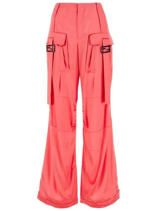 Fendi Women's Viscose Shiny Cargo Straight Pants Pink
