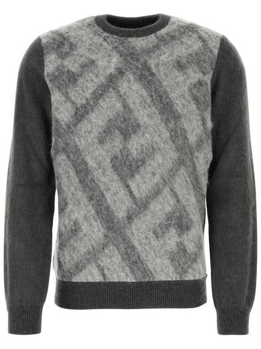Fendi Crew Neck Alpaca Pullover Knit Top Grey