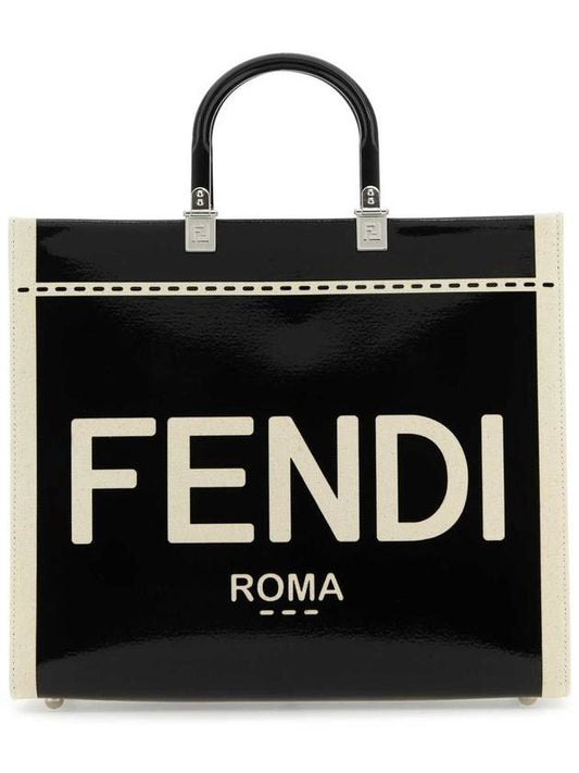Fendi Sunshine Patent Leather Medium Tote Bag Black