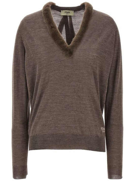 Fendi High Neck Cashmere Wool Knit Top Dark Green
