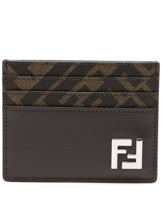 Fendi FF Square Leather Bi-Fold Half Wallet Brown