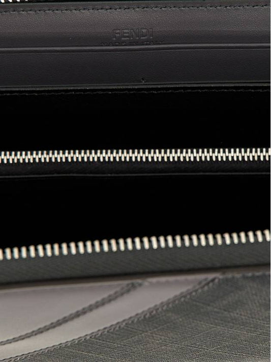 Fendi Diagonal Zip Around FF Canvas Long Wallet Grey