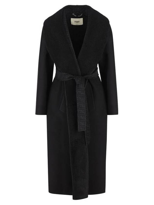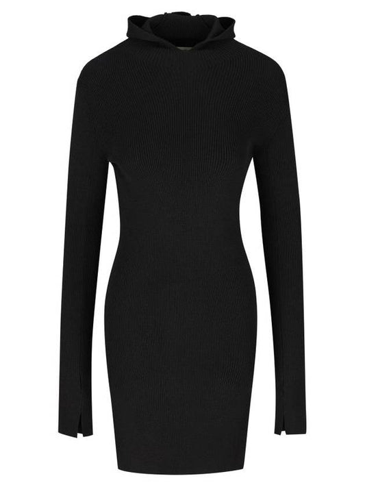 Fendi Long Sleeve Hooded Wool Silk Short Dress Black