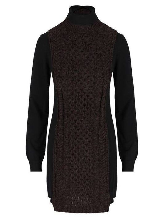 Fendi High Neck Cashmere Midi Dress Dark Purple