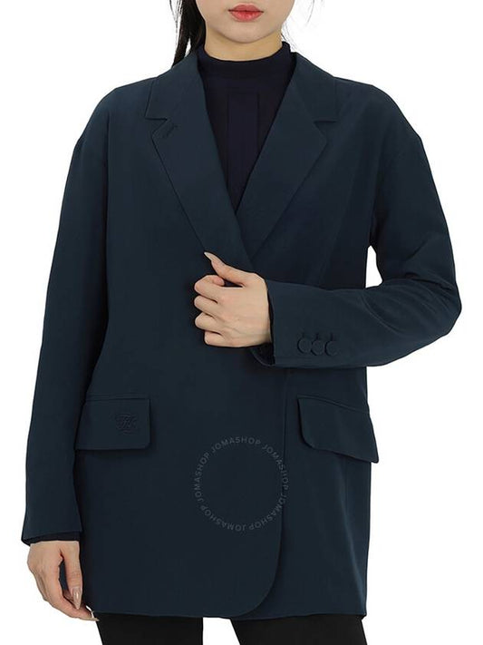 Fendi Crepe Silk Off Center Blazer Jacket Blue