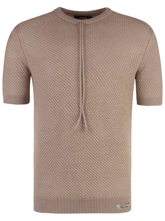 Fendi Mesh Ribbed Wool Knit Top Beige